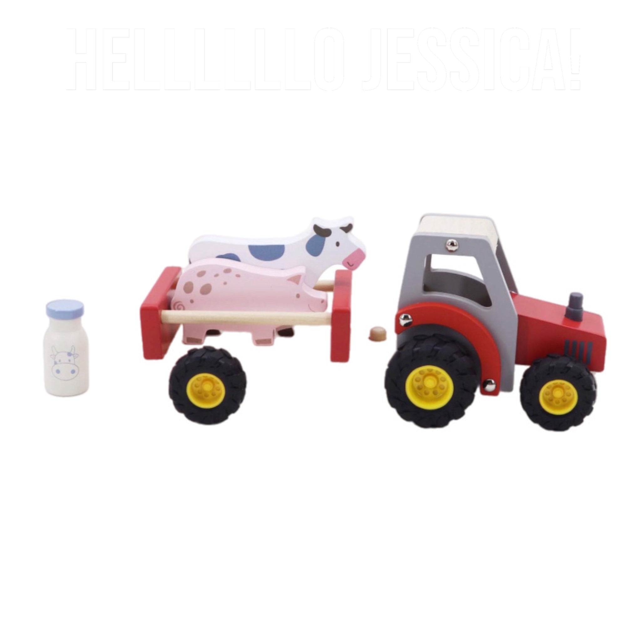This wooden playset includes a red tractor with a cute pig and cow a delightful duo of countryside companions! The animals and tractor is lovingly crafted from sturdy wood and hand-painted with non-toxic, child-safe paints in warm, inviting tones. With wheels that spin and animals that sit snugly in their trailers, this toy encourage imaginative storytelling, roleplay, and the development of fine motor skills.
